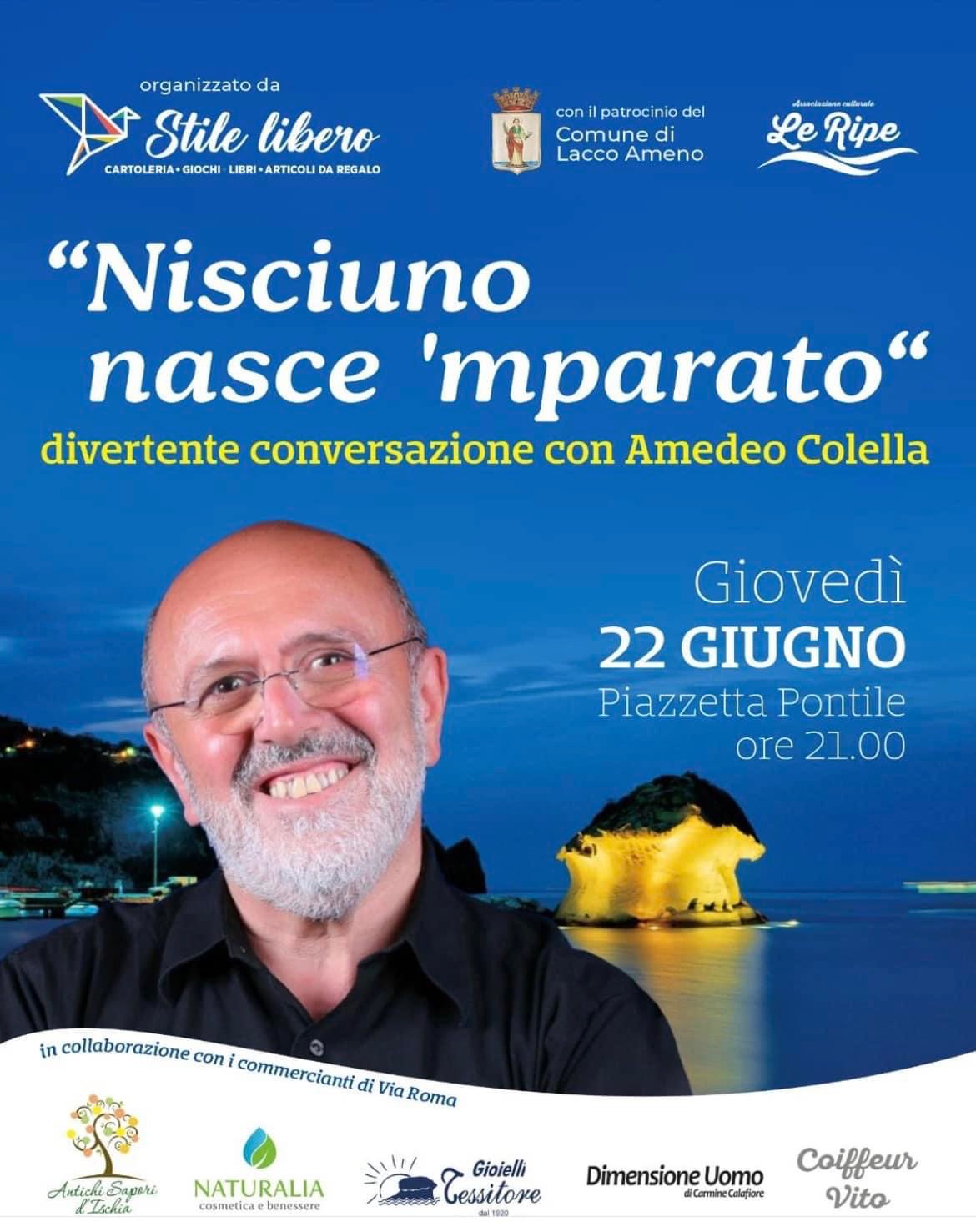 Evento patrocinato dal Comune di Lacco Ameno, promosso dalla cartolibreria Stile Libero e lโAssociazione Culturale Le Ripe, in collaborazione con i commercianti di Via Roma