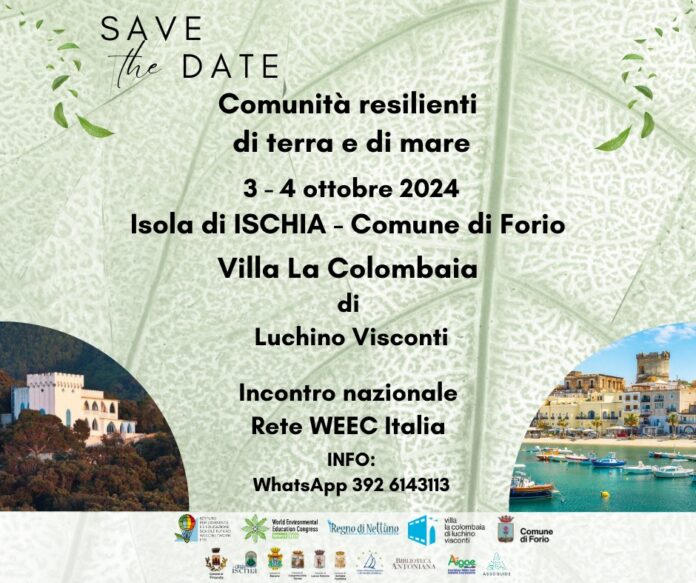 La Rete nazionale WEEC Italia, in collaborazione con l’Isola di Ischia, il Comune di Forio e l’Area Marina Protetta Regno di Nettuno, è lieta di annunciare l’incontro nazionale della Rete WEEC, evento gratuito e aperto a tutti, che si terrà il 3 e 4 ottobre 2024 presso la suggestiva Villa La Colombaia di Luchino Visconti.