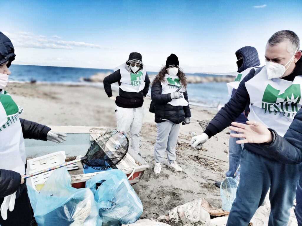 Intervento con i volontari di Hester sull’arenile di San Pietro: un’orca di plastica tra i rifiuti diventa il simbolo della tutela del mare del golfo