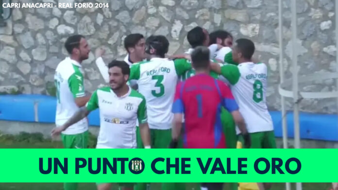 Conquista un punto il Real Forio 2014 nella trasferta in terra caprese. La compagine isolana parte bene e, al termine del primo tempo, è sul doppio vantaggio grazie alle reti di Guatieri e Sogliuzzo. Nella ripresa, però, il Capri attacca a testa bassa e dapprima dimezza lo svantaggio con un rigore realizzato da Mosca, poi completa la “remuntada” siglando la rete del pareggio in pieno recupero sempre con Mosca.