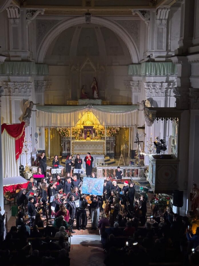 Il 22 dicembre, nella suggestiva cornice della Basilica Pontificia del Sacro Cuore di Gesù e di Santa Maria Maddalena, Casamicciola ha vissuto una serata di grande emozione grazie all’esibizione dell’Orchestra Territoriale Verticale Junior (OTVJ), con scuola capofila il Liceo Musicale Buchner. Un appuntamento che ha unito talento, passione e un forte messaggio di pace, illuminando il pubblico con la potenza universale della musica.