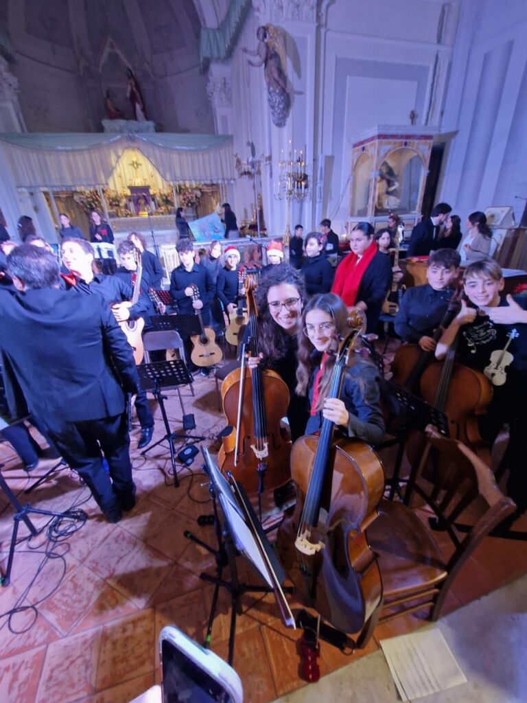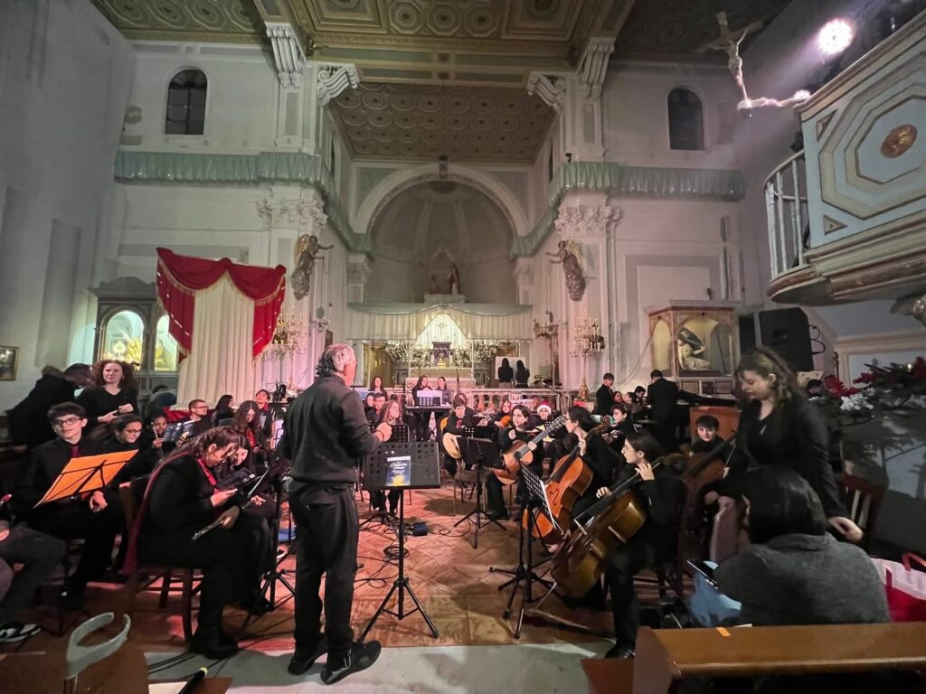 La direzione dell’orchestra è stata affidata al prof. Gianfranco Riccio e alla prof.ssa Rosa Castagliuolo, che hanno guidato i giovani musicisti con sensibilità e competenza, affiancati dai professori Leandro Nicolella, Vincenzo Amazio e Lisa Molinaro, preziosi punti di riferimento durante le esecuzioni. La serata è stata condotta con eleganza dalla prof.ssa Enrica Di Martino, che ha accompagnato il pubblico in un percorso narrativo ricco di emozioni e significati.