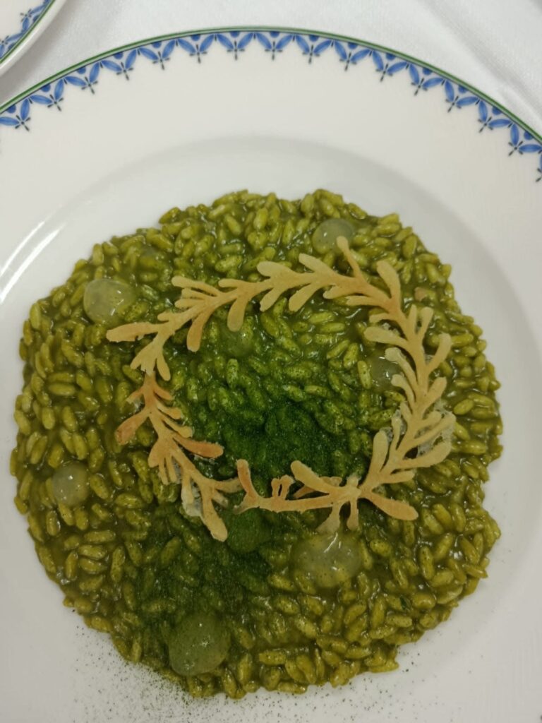 • Primo piatto: Risotto alle cime di rapa con gel di limone, in abbinamento al Biancolella Frassitelli – Casa d’Ambra 2024.