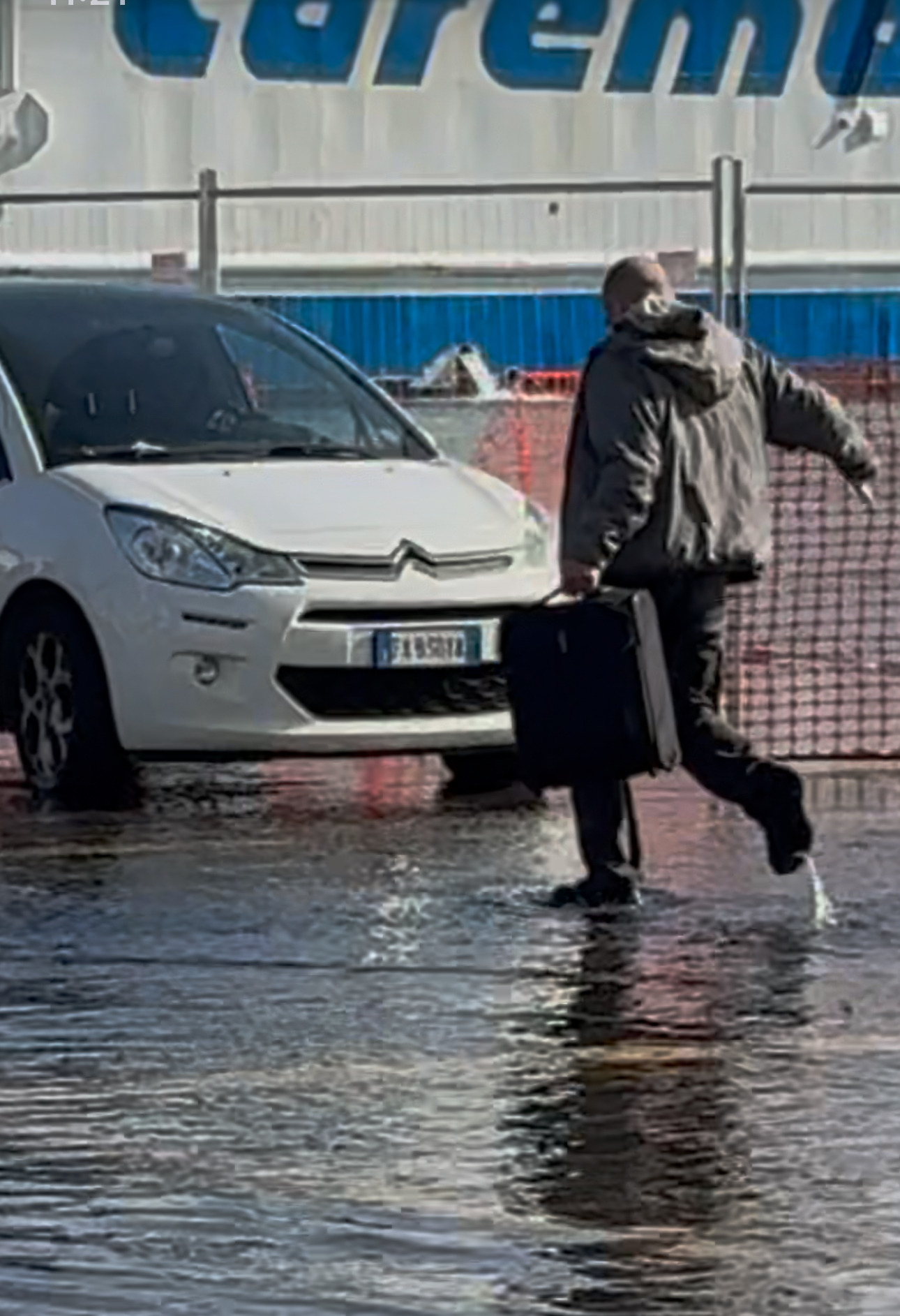 C’è chi ride per sdrammatizzare, chi impreca, chi si ferma un attimo per capire dove mettere i piedi. Intanto l’acqua continua a salire e ritirarsi a ondate, sospinta da un vento che non dà tregua.