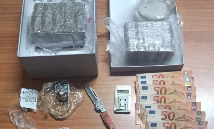 Il conducente, vistosi inseguito dagli operatori, ha accelerato la marcia nel tentativo di eludere il controllo, ma i due sono stati raggiunti, bloccati e trovati in possesso di una busta in stoffa contenente 10 panetti di hashish del peso complessivo di circa 1.060 grammi; presso l’abitazione di uno dei due, invece, sono stati rinvenuti 400 euro e diverso materiale per il confezionamento ancora intriso di sostanza stupefacente.
