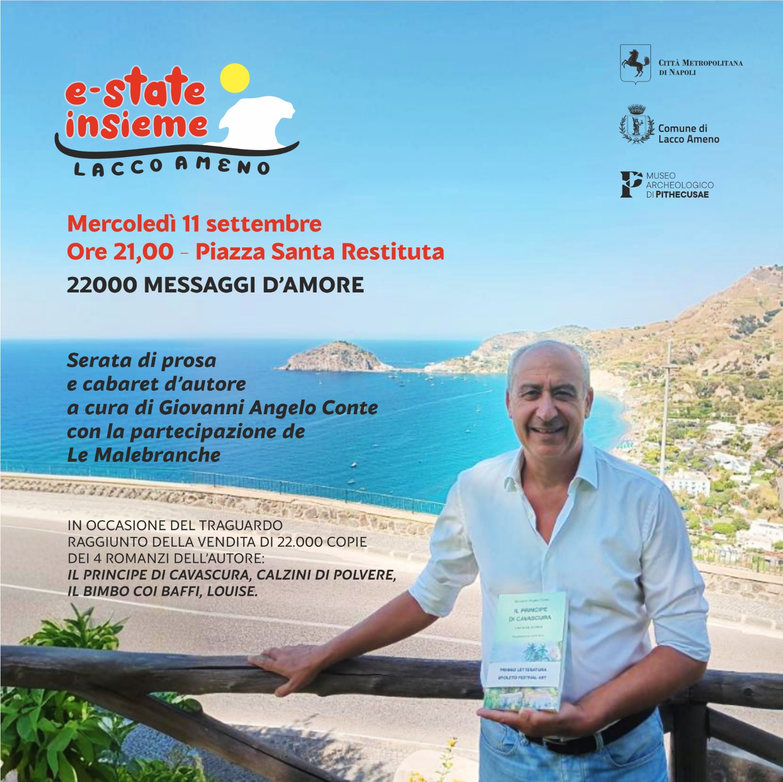 Un evento dedicato ai messaggi di prosa e cabaret d’autore a cura di Giovanni Angelo Conte con la partecipazione de Le Malebranche in occasione del traguardo raggiunto dalla vendita delle 22 mila copie dei quattro romanzi dell’autore: