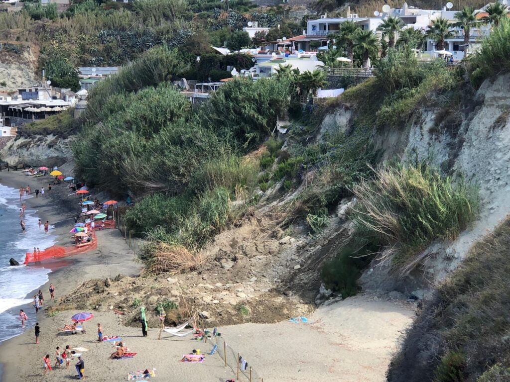 Viene meno sempre di piĂą la sicurezza per i fruitori della spiaggia e per le terrazze delle struttura alberghiera che giace proprio sul costone traballante. Una problematica atavica che non viene risolta – ovviamente – a suon di interdizioni. E nel frattempo turisti e residenti fanno il bagno nel mare splendido a pochi metri da un pericolo imminente, così come la struttura ricettiva interessata continua a svolgere la sua attivitĂ fino a diverse indicazioni. Si aspetta forse il morto prima di intervenire seriamente?
