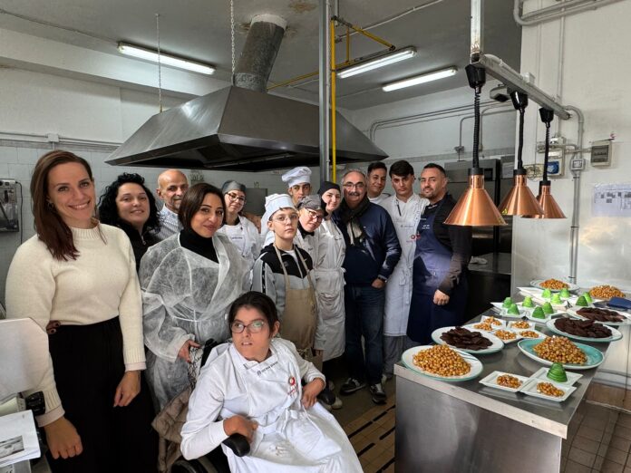 Protagonisti della giornata sono stati i “ragazzi speciali” che hanno affiancato il maestro Marano nella preparazione di dolci della tradizione natalizia: struffoli, mostaccioli e un sorprendente albero di Natale in cioccolato bianco e amarena, simbolo di creatività e condivisione.