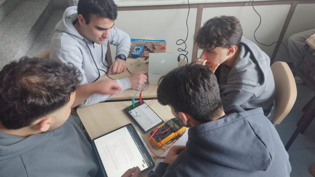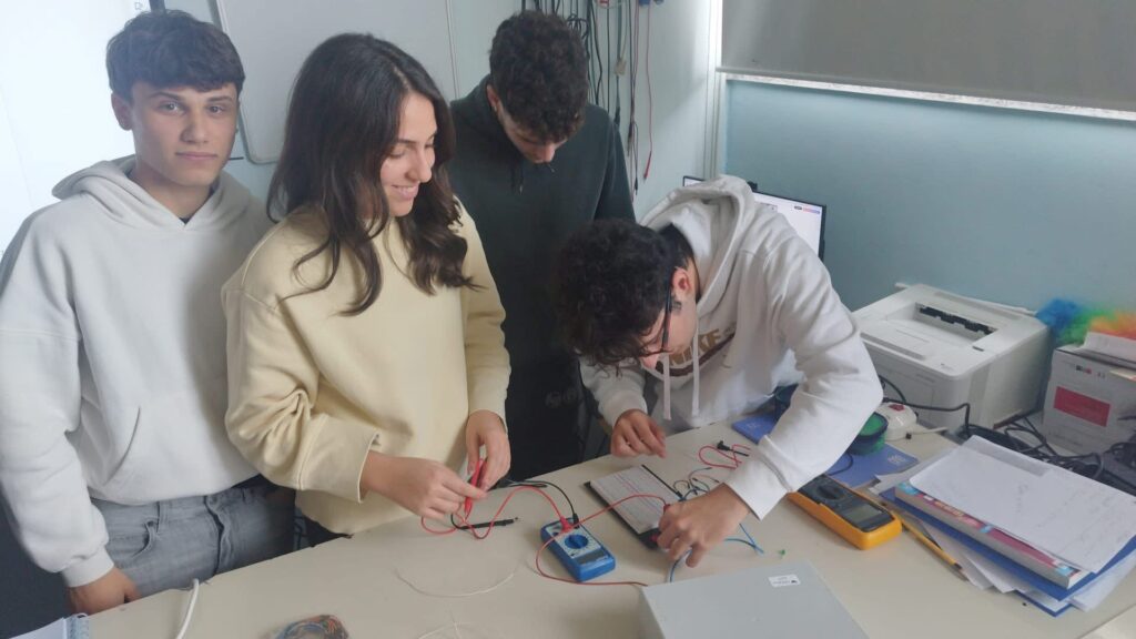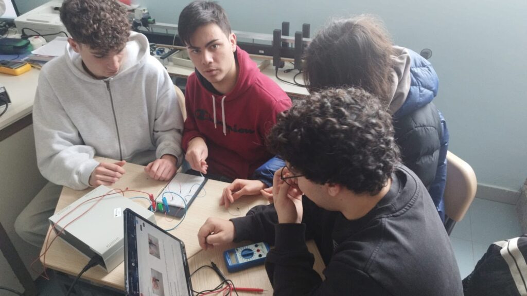 Le attività svolte nel laboratorio sono numerose e diversificate. Tra le più significative figurano: la realizzazione e l’analisi di circuiti elettrici, per comprendere in modo diretto il comportamento della corrente; lo studio dei collegamenti in serie e in parallelo, utile per osservare come varia la distribuzione della tensione e dell’intensità; l’osservazione dei fenomeni di carica e scarica di un condensatore, un classico esperimento che permette di visualizzare concetti fondamentali dell’elettrofisica.