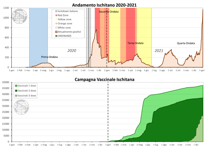 Sono orami due anni che con l’associazione ingegneri Ischia mi occupo dell’elaborazione dati del contagio ischitano, abbiamo iniziato raccogliendo i dati forniti dai rapporti emanati con cadenza settimanale dall’ASL Napoli settimanali poi l’introduzione della piattaforma Sinfonia messa a disposizione dalla Regione Campania ai Comuni al fine del tracciamento e monitoraggio dei contagiati ci ha permesso di accedere a molte più informazioni sull’evoluzione dell’epidemia sul territorio ischitano. Il nostro, un servizio gratuito con lo scopo esclusivo di monitorare statisticamente la propagazione del virus sul territorio ischitano, i dati raccolti sono stati fin da subito condivisi tramite il nostro sito con il resto della popolazione. Questi due anni sono stati caratterizzati da forti limitazioni ed abbiamo dovuto cambiare, per forza di cose, nostri comuni comportamenti ed atteggiamenti, anche un semplice abbraccio e un incontro tra parenti ci sono stati negati per evitare la diffusione del contagio, sacrifici e limitazioni con cui la popolazione ha poi imparato a convivere. Diverse sono state le misure restrittive adottate nei due anni; il 2020 primo anno della pandemia ha visto delle misure più severe, un duro lockdown improvviso di circa tre mesi ci ha messo di fronte al duro cambiamento epocale che avremmo di lì a poco dovuto affrontare, una misura efficace che ha notevolmente ridotto la trasmissione del contagio e “salvato “ il sud Italia in quanto arrivato prima di che il virus si diffondesse sul territorio come verificatosi al nord Italia.