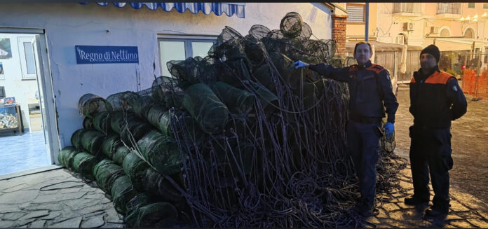 I militari della Guardia Costiera  di Ischia, impegnati nei consueti controlli, hanno sequestrato nella giornata di ieri ben 400 “nasse”, utilizzate illecitamente all’interno dell’Area Marina Protetta “Regno di Nettuno”. L’attività, svolta in piena sinergia con la stessa Area Marina Protetta, ha visto l’intervento della Motovedetta CP575,  il supporto dell’istituto zoologico “Anthon Dorn” e l’ausilio di un pescatore locale. In corso accertamenti per l’individuazione dei responsabili. Le attività di controllo proseguiranno anche nei prossimi giorni.