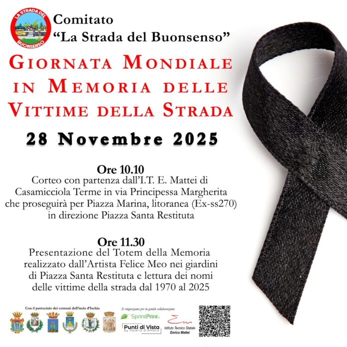 Il 28 novembre 2025, l’isola d’Ischia si unirà alla commemorazione della Giornata Mondiale in Memoria delle Vittime della Strada, con un evento toccante promosso dal comitato “La Strada del Buonsenso”. L’iniziativa, patrocinata dal Comune dell’isola d’Ischia, vuole sensibilizzare la comunità sull’importanza della sicurezza stradale e rendere omaggio a chi ha perso la vita sulle strade dal 1970 ad oggi.