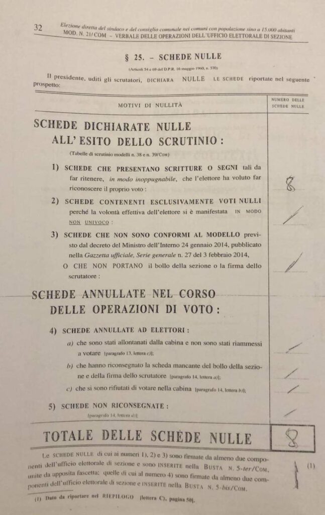 Il presunto voto in più tanto reclamato da Giacomo Pascale nella sezione n.3 è presente solo in un audio di un video che è frutto di un errore di conteggio, chiaramente evidenziato nei verbali.