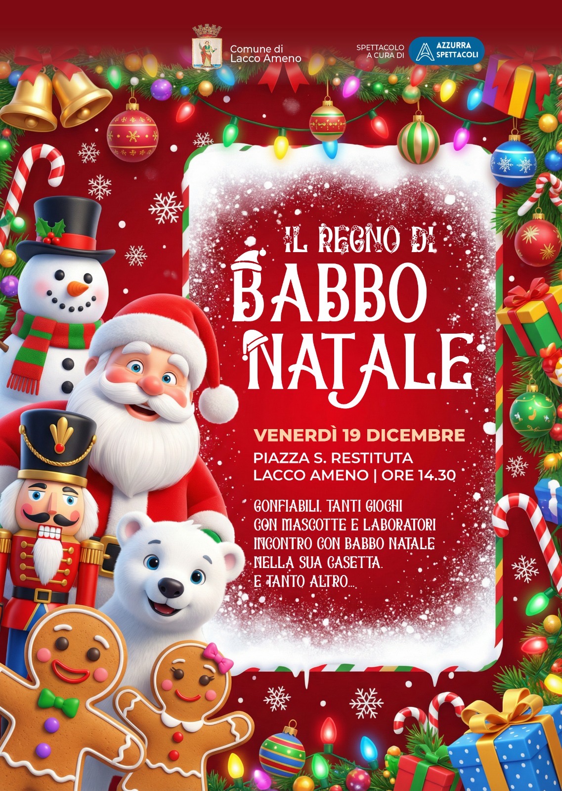 Venerdì 19 dicembre, a partire dalle ore 14:30, Piazza Santa Restituta a Lacco Ameno si trasformerà in un vero e proprio “Regno di Babbo Natale”, pronto ad accogliere bambini, famiglie e curiosi in un’atmosfera incantata e festosa.