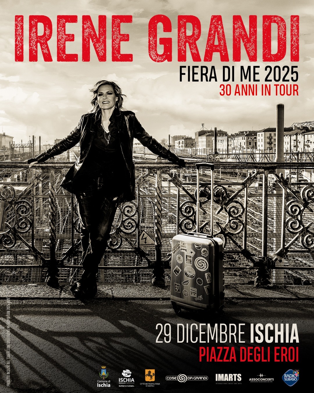 Sarà Irene Grandi la protagonista del Natale a Ischia 2025/2026 nell’ambito della rassegna di eventi organizzata dal Comune di Ischia in collaborazione con la DMO di Ischia Risorsa Mare. Il 29 dicembre, a Piazza degli Eroi (ore 20:30), Irene Grandi torna sul palco a dicembre 2025 con un appuntamento speciale che farà tappa anche ad Ischia nell’ambito del tour “Fiera di Me – 30 anni in Tour”, il progetto con cui l’artista celebra tre decenni di musica, di storia personale e di successi che hanno segnato più generazioni.