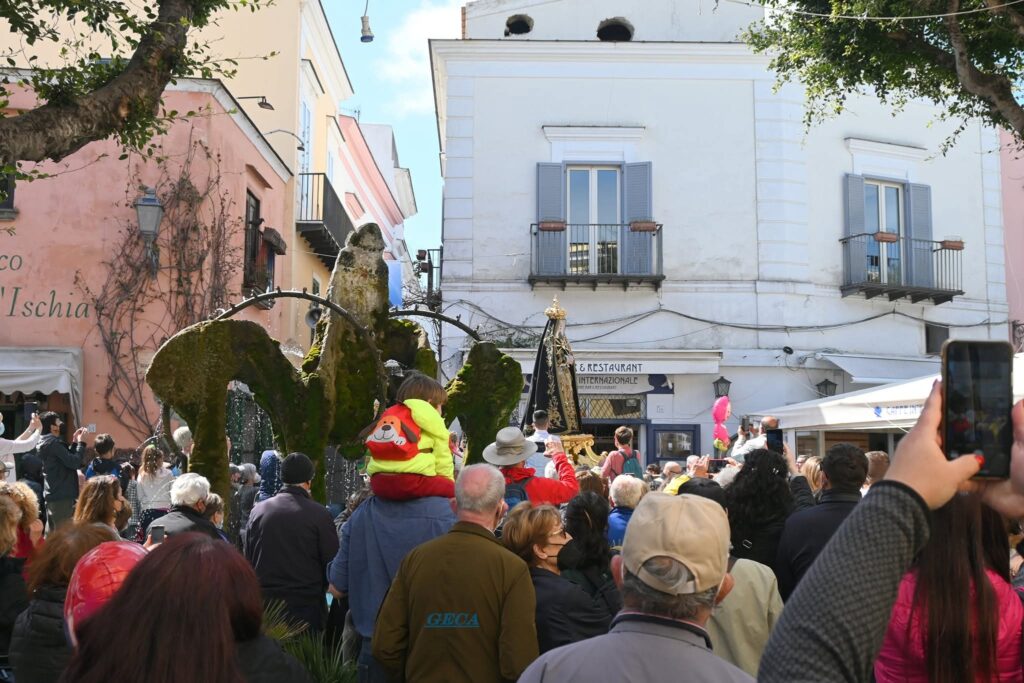 Con il cosiddetto “venerdì di Passione” si apre domani la “Decimana Santa” di Forio con lo sguardo ed il cuore fissi verso la Vergine Addolorata. Il Popolo di Forio tributerà come ogni anno gli onori alla “sua” Madonna già dalle prime ore del mattino. Alle 10.00 la Messa Solenne, trasmessa in diretta da Nuvola tv, alle 11.00 la Processione penitenziale, che seguiremo sempre in diretta. In studio Luciano Castaldi, il Prof. Aniello Penza(?), il Diacono Don Giuseppe Iacono ed il M