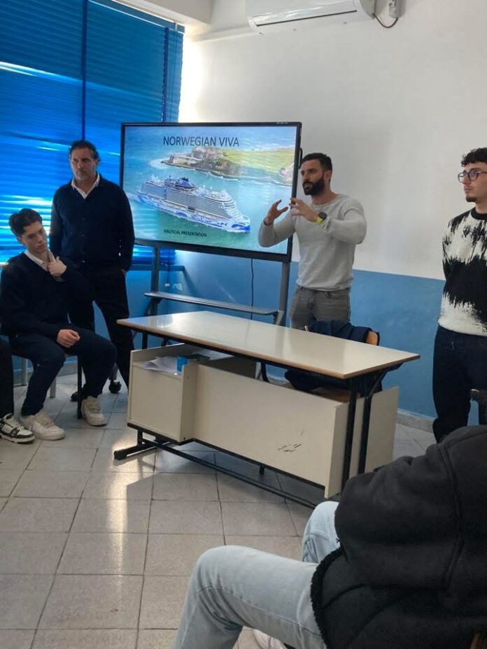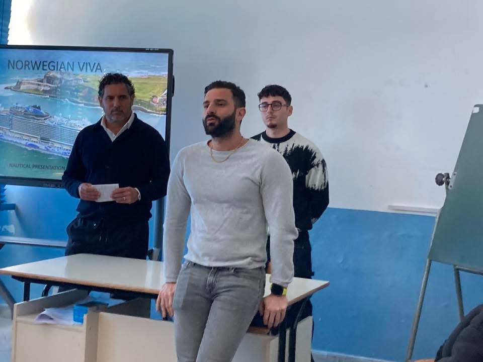 Giornata speciale all’ITTL “Mennella”, dove gli allievi delle classi seconde e terze hanno partecipato a un incontro di orientamento dedicato al mondo marittimo, guidato da tre figure di spicco della comunità professionale isolana: il comandante Doriano Manzi, il Safety Officer Marine Coordinator della Princess Cruises Luigi Grifo e il Secondo Ufficiale di Macchine Brian Buonomano.