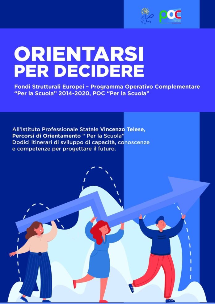 Il Progetto “Orientarsi per decidere” intende potenziare le azioni e i percorsi di orientamento nelle classi terze, quarte e quinte dell’I.P.S. Vincenzo Telese per favorire scelte tali da valorizzare e far emergere i talenti degli studenti secondo quanto previsto dalle Linee guida per l’orientamento adottate con il D.M. n. 328 del 22 dicembre 2022. Le competenze orientative sono quelle capacità che permettono di gestire il più possibile in autonomia le proprie scelte formative e professionali oltre che per la gestione della carriera. Gli obiettivi sono: sviluppare la conoscenza di sé per costruire una propria identità, favorire la maturazione di una propria capacit decisionale rafforzando la stima di sé e la sicurezza personale, prendere coscienza del proprio stile cognitivo, giungere ad una consapevole e motivata autovalutazione. Il progetto contempla azioni che aiutino a far emergere i bisogni e i sogni e che contribuiscano a collocarsi nel contesto reale sviluppando un disegno di vita che potrà arricchirsi ed evolvere nel tempo. I dodici moduli previsti moduli seguono le tematiche orientative: lavoro e professioni, percorsi post-diploma, valorizzazione professionale