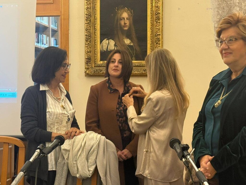 Il momento simbolico della consegna della spilla alla Past President, realizzata in corniola e artigianalmente creata da Sara Sebastiano, ha rappresentato un gesto di gratitudine e continuità. Emozionante anche la spillatura della nuova socia, la Dott.ssa Sara Minicucci, sociologa ed esperta in management sanitario, che arricchirà la Sezione con competenze preziose.