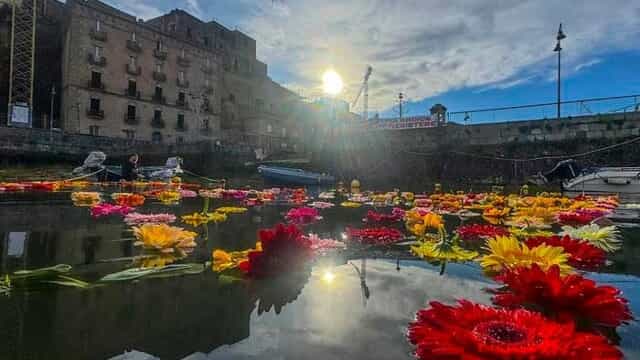 Pozzuoli – Centinaia di fiori colorati hanno illuminato lo specchio d’acqua della darsena, ai piedi del Rione Terra, in un gesto carico di significato. L’iniziativa, promossa dai commercianti del comitato “Darsena Pozzuoli”, è stata pensata come simbolo di lotta al bradisismo e di rinascita della città, duramente segnata dall’innalzamento del sottosuolo che ha quasi prosciugato il piccolo porto, da sempre punto di riferimento per i pescatori.