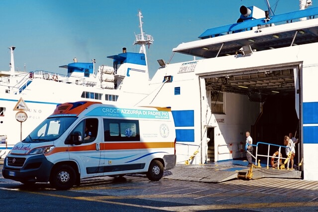 Lorenzo racconta di essere stato costretto ad attendere il traghetto successivo, in condizioni tutt’altro che ideali, sdraiato sul lettino dell’ambulanza.