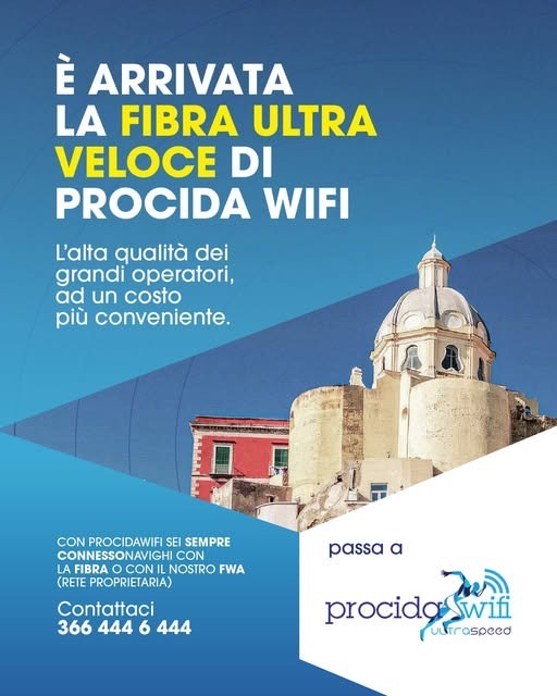 Procida, — Procida Net Srl, società titolare del brand “Procida WiFi”, attiva sull’isola dal 2015 nel settore delle telecomunicazioni wireless, annuncia l’ampliamento della propria offerta con l’introduzione della connettività in FTTC e FTTH, portando così la Fibra Ultra Veloce a Procida.