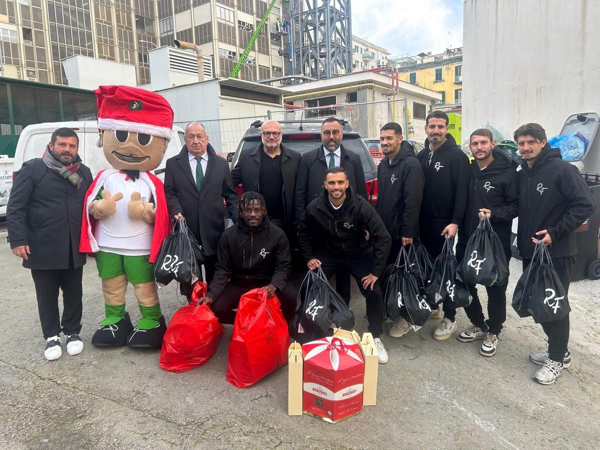 Un elegantissimo dirigente Ciro Verde, mister Carlo Sanchez, e un numeroso gruppo di giocatori nel quale non poteva mancare il capitano Mario Pistola, con Simone D’alessandro, Giovanni Di Lorenzo, Luigi Velotti, Antonio Tarascio, David Johnson hanno regalato doni e soprattutto momenti di spensieratezza ai bimbi presenti nella struttura ospedaliera grazie all’ottima organizzazione della dottoressa Signorella e della Fondazione Santobono Pausilipon Onlus.
