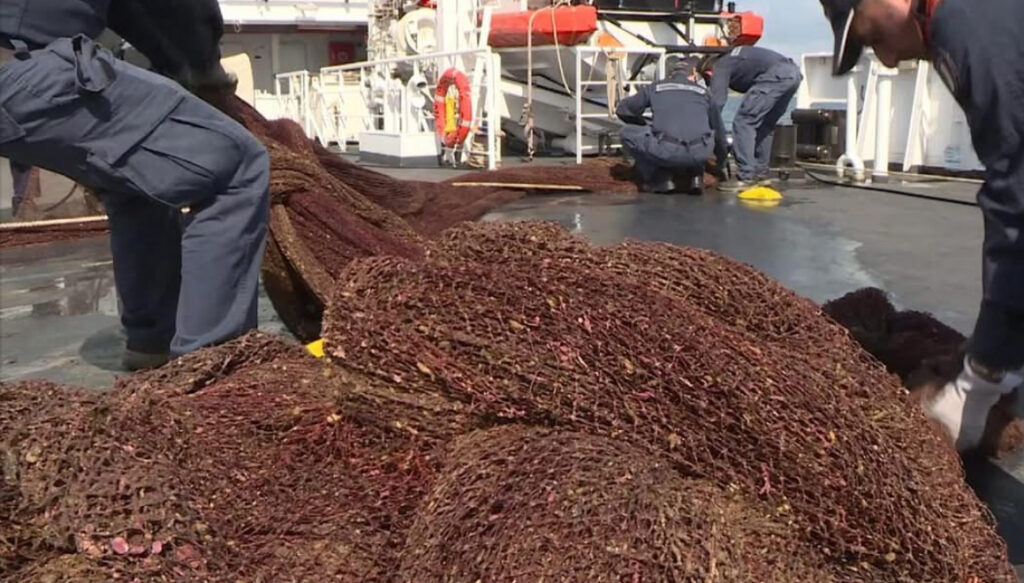 L’operazione è stata resa possibile grazie alla segnalazione dell’Area Marina Protetta e a un lungo lavoro preparatorio. La Nave Gregoretti, insieme ai subacquei specializzati, ha effettuato il recupero in sicurezza, riportando in superficie l’intera rete e rimuovendo così una fonte di inquinamento invisibile ma estremamente dannosa.