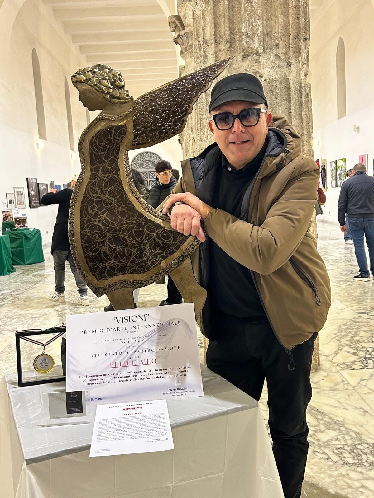 Tra le opere esposte, ha brillato particolarmente “L’ANGELO”, un’opera del maestro scultore Felice Meo. Questa creazione, simbolo di maestria e profondità artistica, è stata scelta come rappresentativa per l’evento. La scultura ha incantato il pubblico presente, attirando sguardi ammirati e suscitando emozioni profonde.