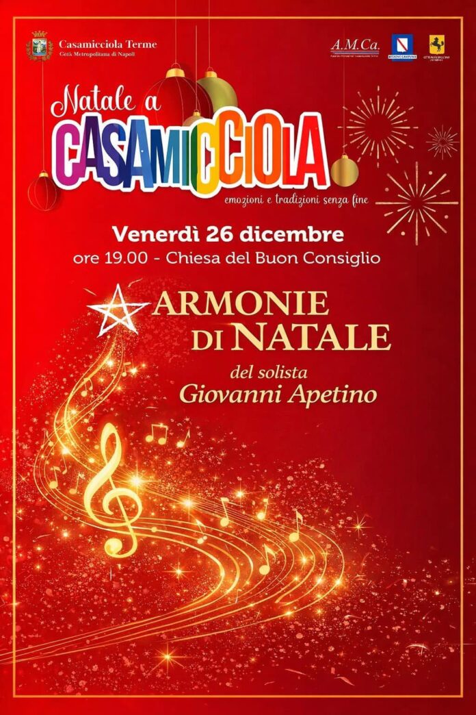 Il prossimo venerdì 26 dicembre, alle ore 19.00, la Chiesa del Buon Consiglio di Casamicciola Terme ospiterà un evento musicale imperdibile: “Armonie di Natale”. Un appuntamento speciale pensato per vivere appieno la magia delle festività attraverso le note della musica.
