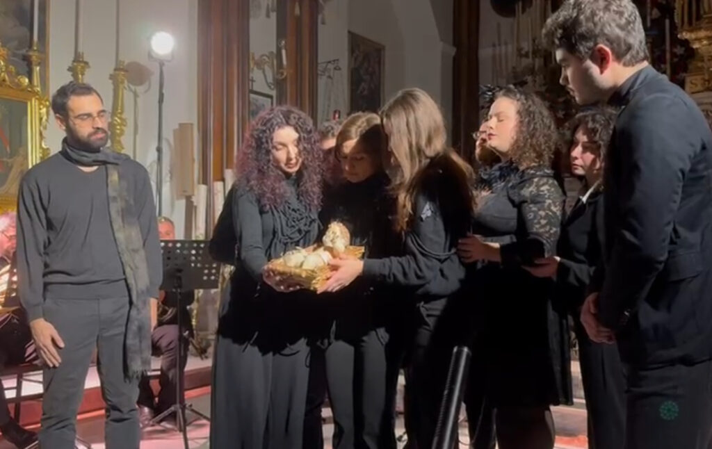 Alle ore 20, sotto le volte della Basilica illuminata a festa, ha preso forma una Cantata che ha dato voce agli animali del presepe, protagonisti di un racconto che affonda le radici nella cultura popolare: secondo un’antica credenza, nella notte del Natale gli animali ricevono il dono della parola. Ronga ha trasformato questa leggenda in un viaggio teatrale e musicale capace di emozionare adulti e bambini.