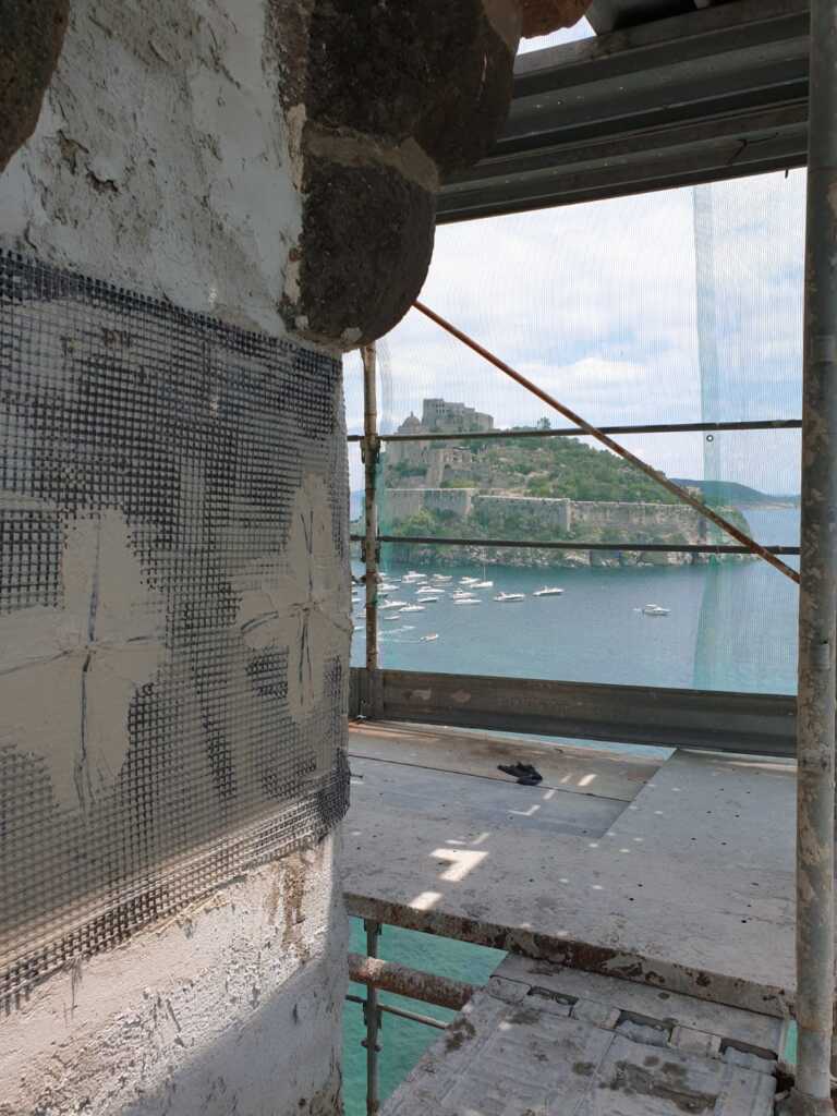Durante l’intervento si è reso necessario integrare la progettazione perchĂ© la situazione statica, specialmente dei 4 cantonali, dopo lo spicconamento dell’intonaco, è purtroppo apparsa fortemente compromessa. Da qui l’esigenza di reperire ulteriori risorse per interventi di risanamento e conservazione della statica.  Attraverso tecnologie e strumenti non invasivi, duraturi nel tempo e di elevata compatibilitĂ con la bellezza del luogo, l’intento dell’intervento è quello di rilanciare la struttura quale principale bene del patrimonio culturale campano.