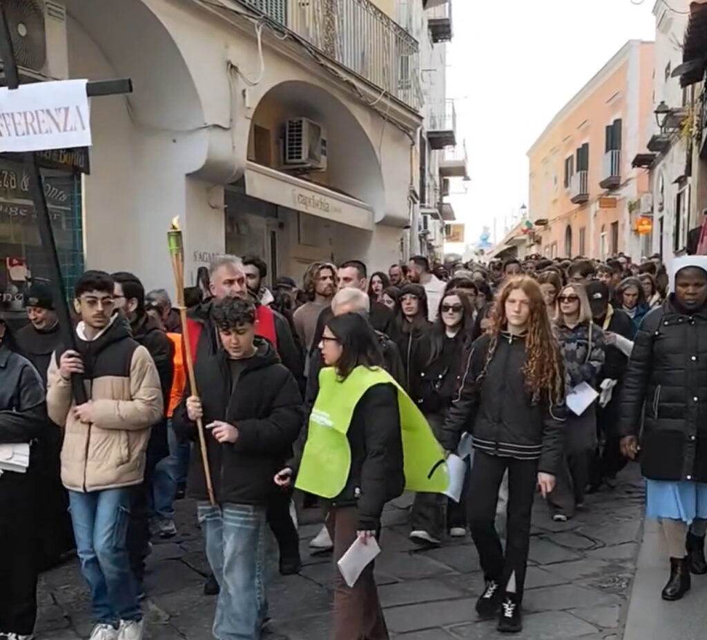 La Via Crucis dei giovani ha trasformato Ischia in un fiume di volti, passi, musica e preghiere, unendo due diocesi in un unico grande abbraccio di fede. Nel pomeriggio di sabato 14 marzo, dalle 16:30, centinaia di ragazzi hanno riempito le vie del centro storico, dando vita a un cammino che è stato insieme rito, testimonianza e speranza. A guidare spiritualmente l’incontro, il Vescovo Mons. Carlo Villano, presenza comune e ponte vivo tra le comunità di Pozzuoli e Ischia.