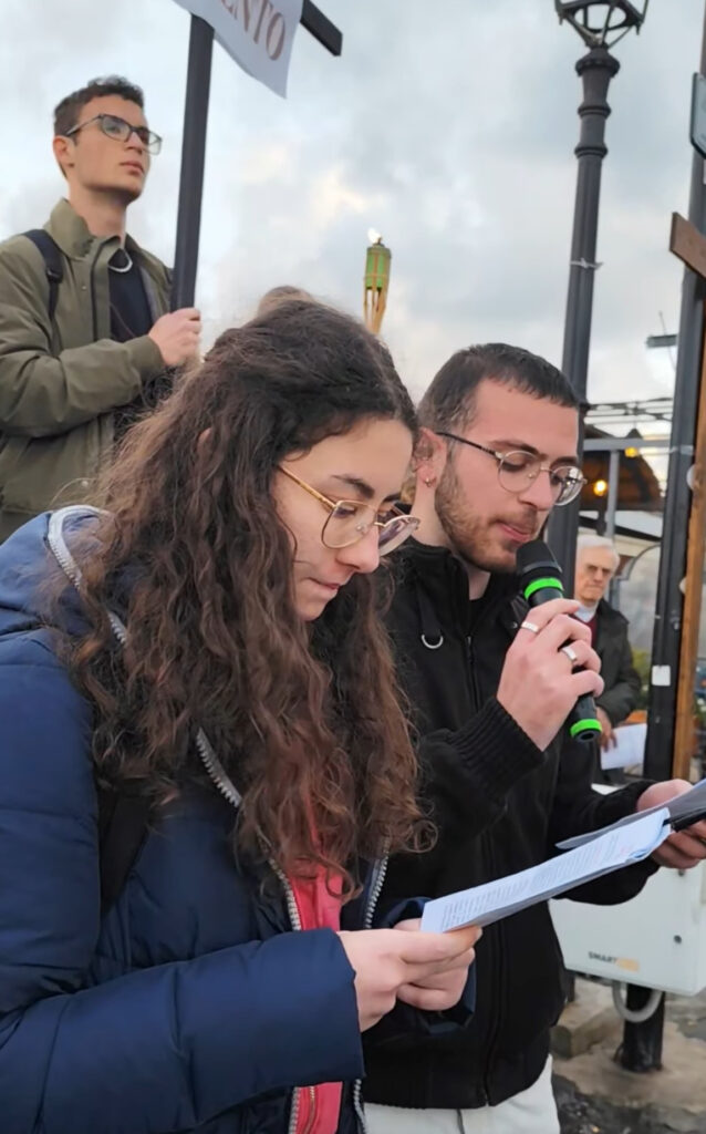 Il Vescovo Villano ha ricordato che questa Via Crucis non è solo memoria della Passione, ma un gesto di vicinanza verso tutti i giovani che oggi vivono la loro personale croce: chi è colpito dalla guerra, chi affronta la solitudine, chi lotta per un futuro incerto. Camminare insieme, ha sottolineato, significa riconoscersi parte di un’unica famiglia umana, chiamata a non voltarsi dall’altra parte.