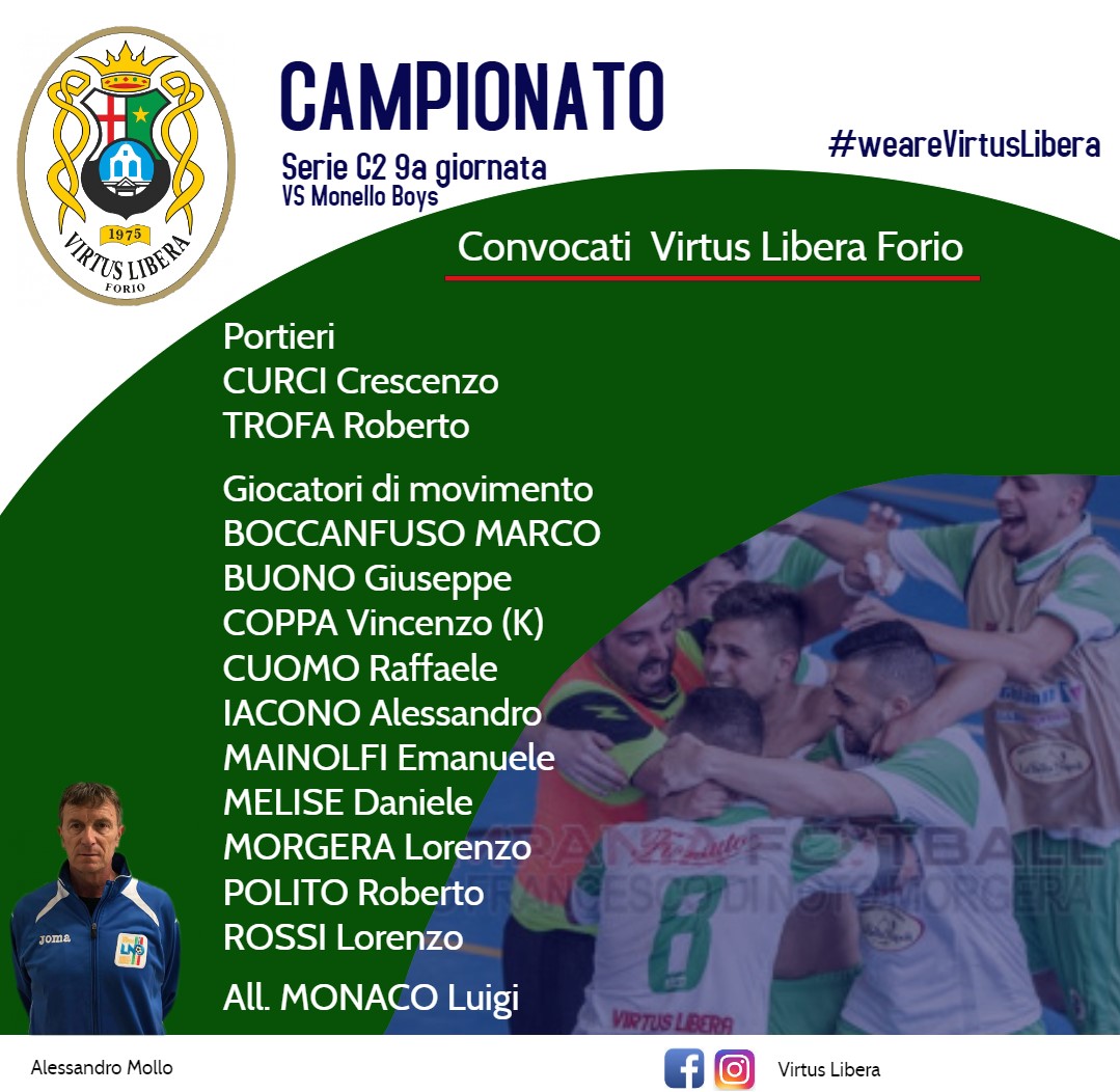 Diretta. La partita Virtus Libera Forio – Monello Boys, valida per la nona giornata del campionato di serie C2, si giocherà domani pomeriggio al Palacasale di Forio, con inizio alle ore 15.00. La partita sarà trasmessa in diretta su Nuvola Tv (pagina Facebook “Nuvola Tv”.